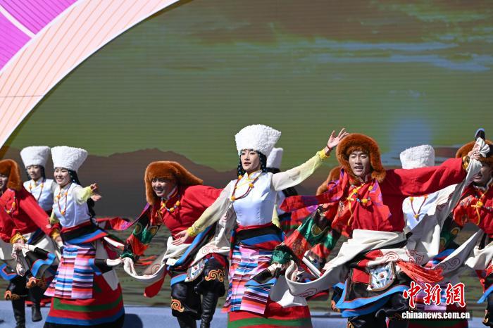 图为阿里区域改则县艺术团演出跳舞《悲舞幸运·改则情》。中新社记者 贡嘎去紧 摄