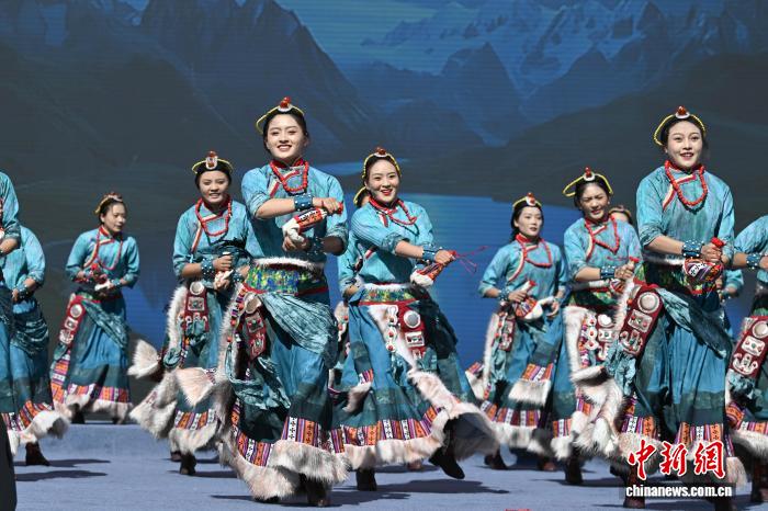 图为阿里区域改则县艺术团演出跳舞《悲舞幸运·改则情》。中新社记者 贡嘎去紧 摄